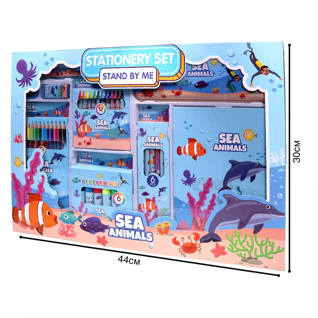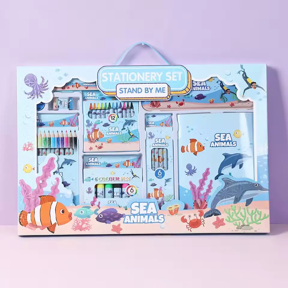 Творческий набор для рисования с пеналом, карандашами и маркерами, стиль Морская тематика, для детей