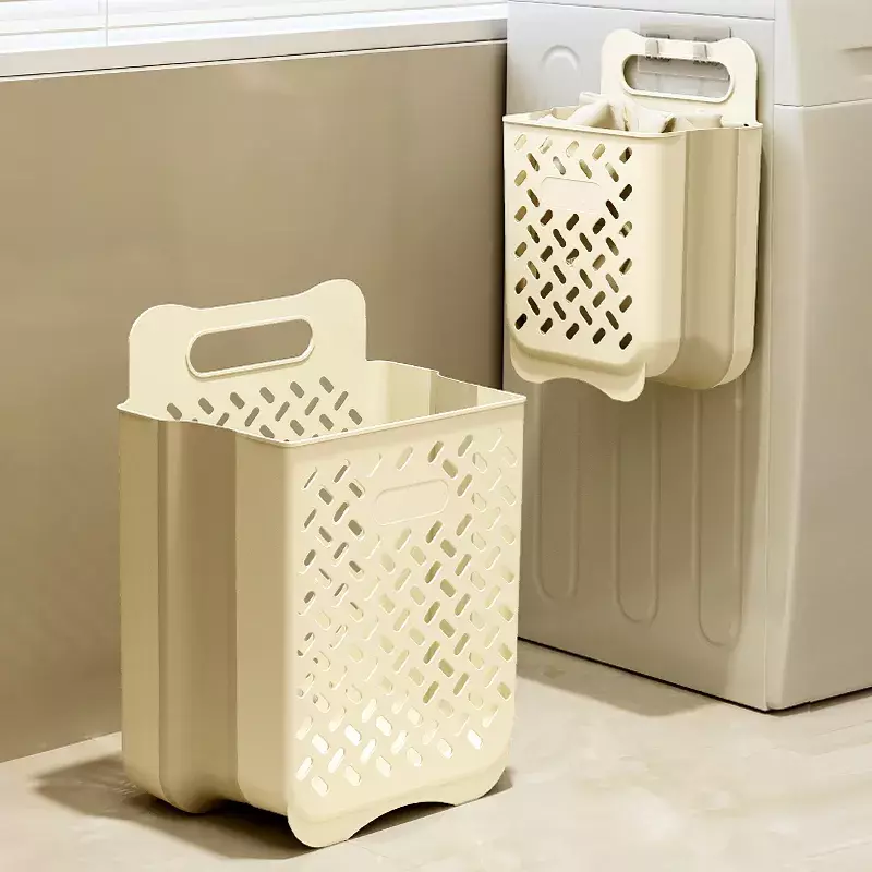 Удобная пластиковая корзина для белья, настенная складная модель сетчатая, 35×25×49см