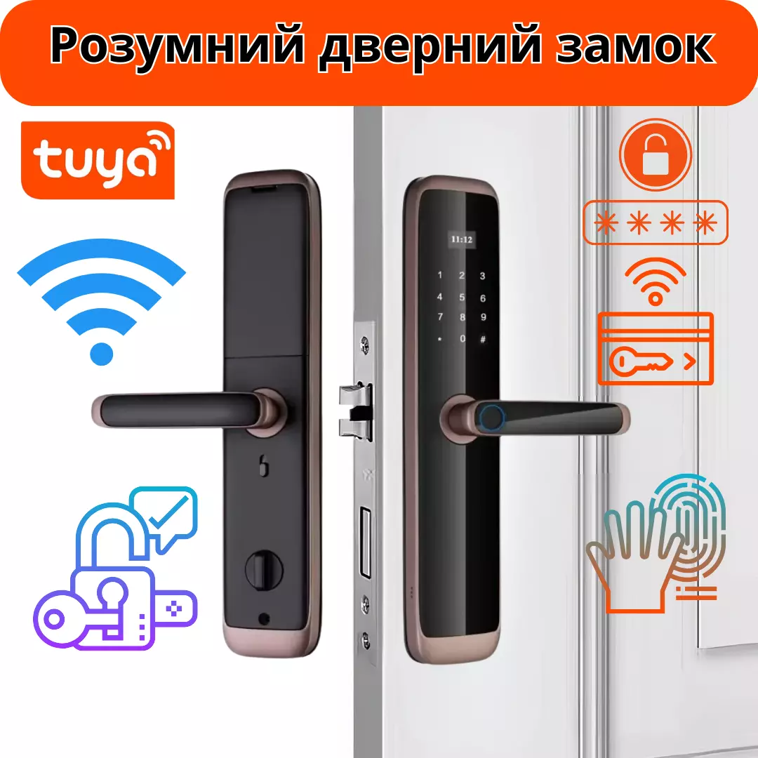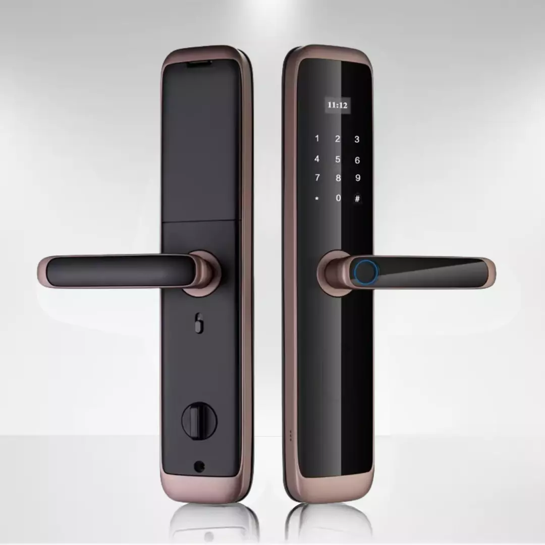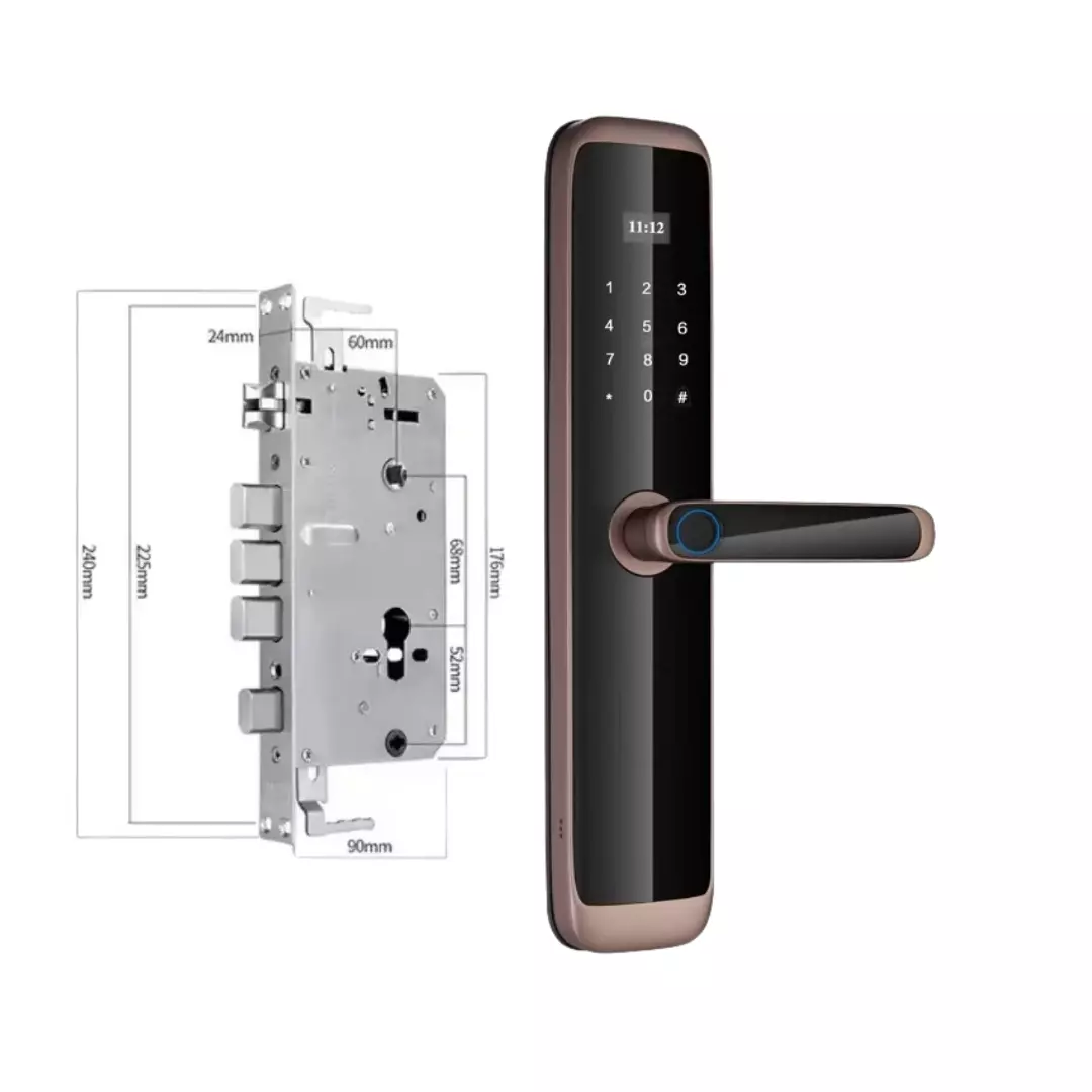 Умный дверной замок KHS-X06 предлагает современные технологии для защиты вашего жилища. Благодаря поддержке биометрических данных, пароля и карт доступа, вы можете выбирать удобный способ открытия двери. Элегантный бронзовый корпус из алюминиевого сплава не только устойчив к повреждениям, но и придаёт замку стильный и благородный внешний вид. Управление через приложение Tuya WiFi App позволяет удалённо контролировать доступ и получать уведомления о действиях.