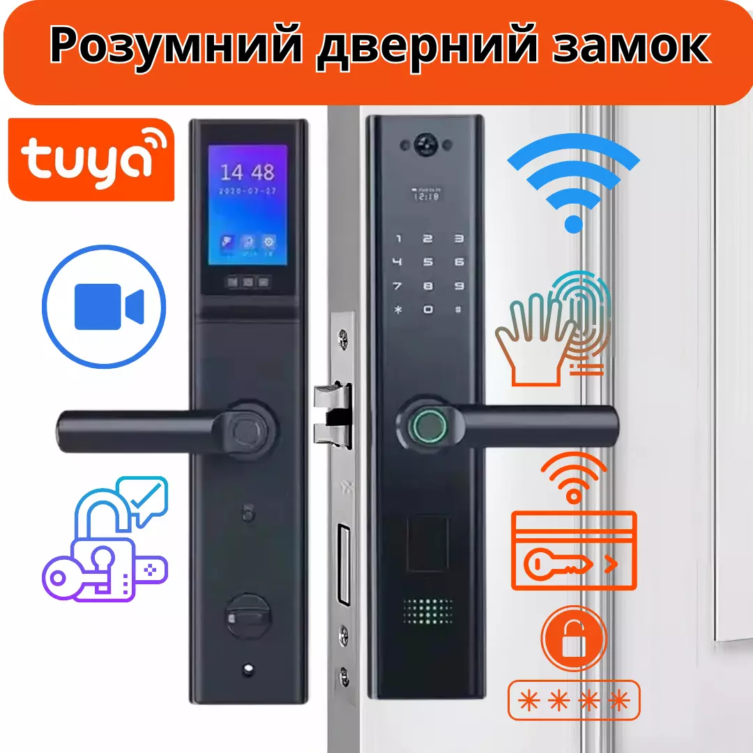 Умный дверной замок с камерой,кодовым замком Wi-Fi с отпечатком пальца и ключ-картой,алюминиевый сплав