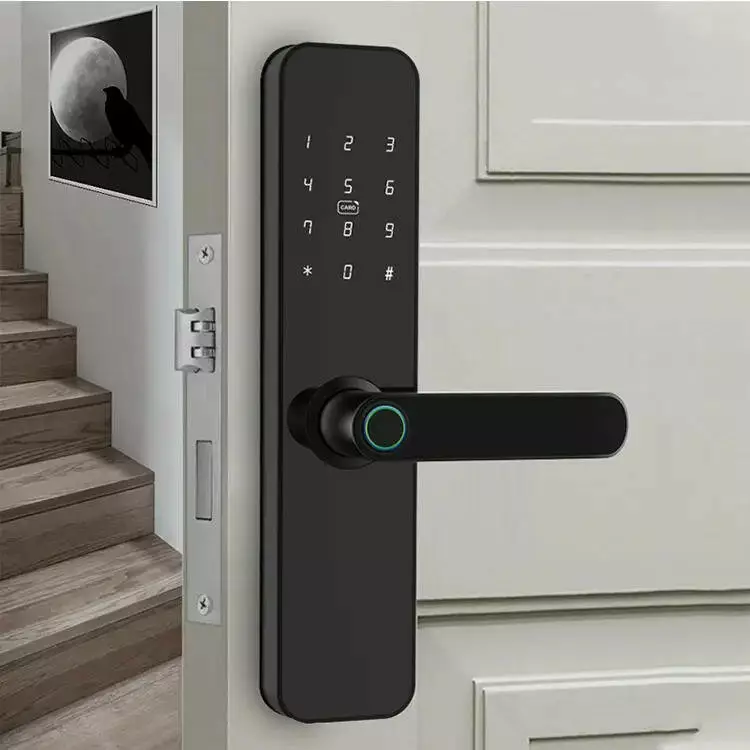 Умный дверной замок с Wi-Fi кодовый KHS-D7 с ключ-картой и отпечатком пальца ,черный