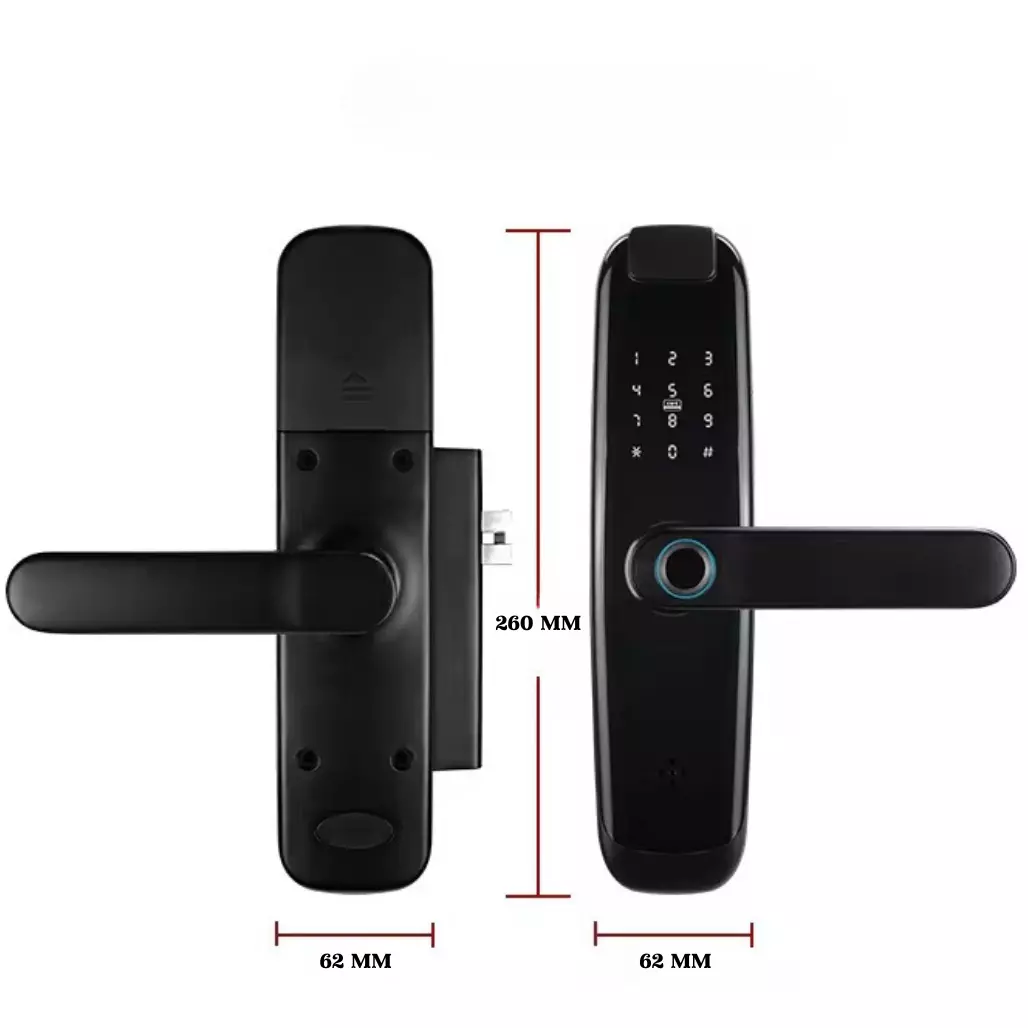 Толщина двери должна составлять 38–55 мм, что позволяет использовать его в разнообразных интерьерах. Встроенный полупроводниковый датчик отпечатков пальцев и энергосберегающая система питания от четырёх AA батареек обеспечивают длительный срок службы устройства. Установить замок очень просто благодаря продуманной конструкции и четким инструкциям.
