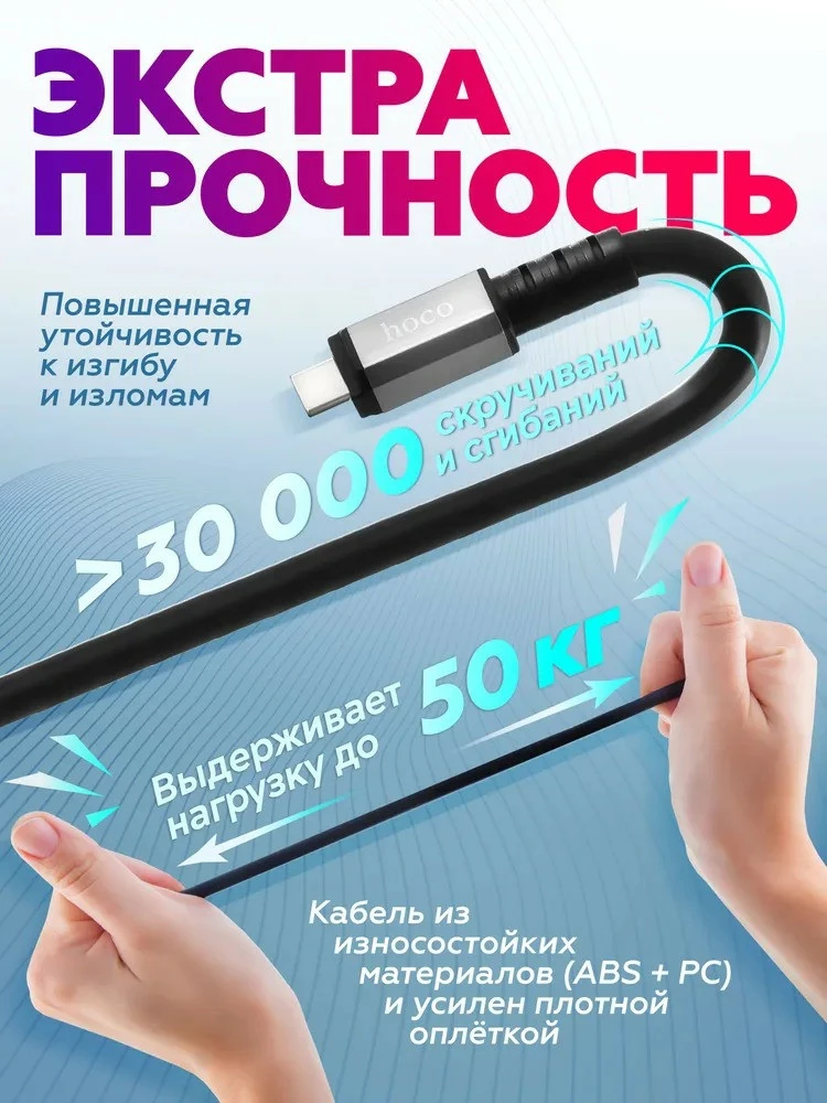 USB Кабель HOCO X85 USB - Type-C для телефона, ноутбука, пк 1М Черный