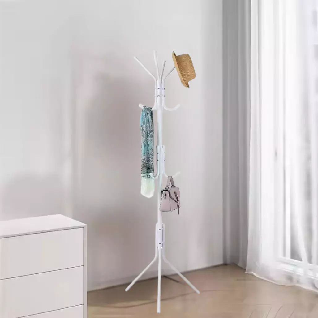 Вешалка выполнена из качественного металла, что обеспечивает её прочность и долговечность. Благодаря устойчивой конструкции она выдерживает значительную нагрузку и остаётся устойчивой даже при большом количестве вещей. Поверхность металла покрыта специальным защитным слоем, предотвращающим появление ржавчины и обеспечивающим долговечность изделия.