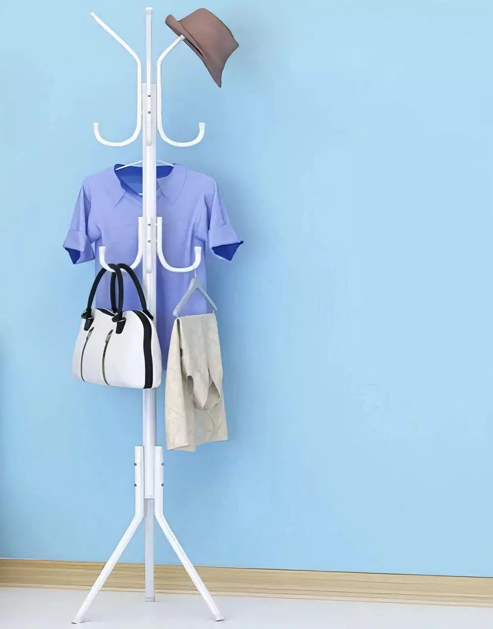 Эта напольная вешалка для одежды сочетает в себе практичность и