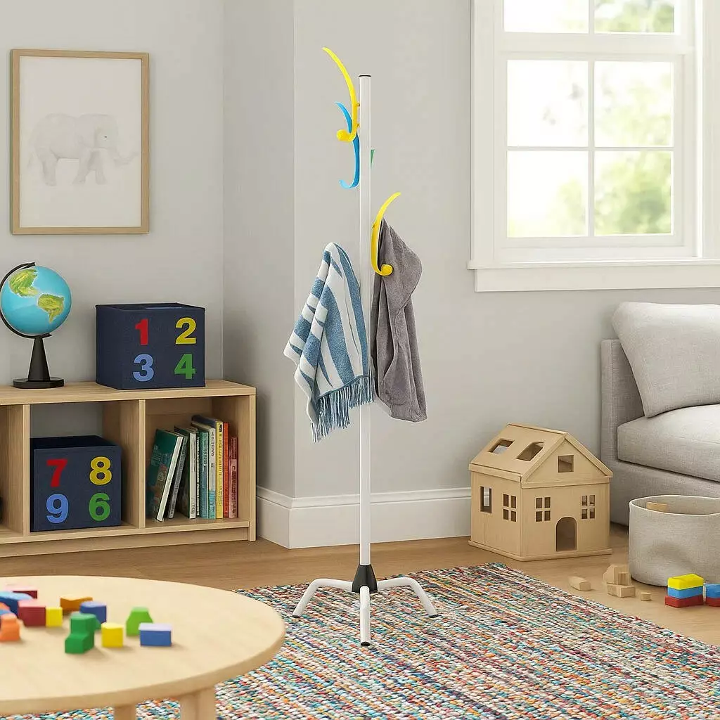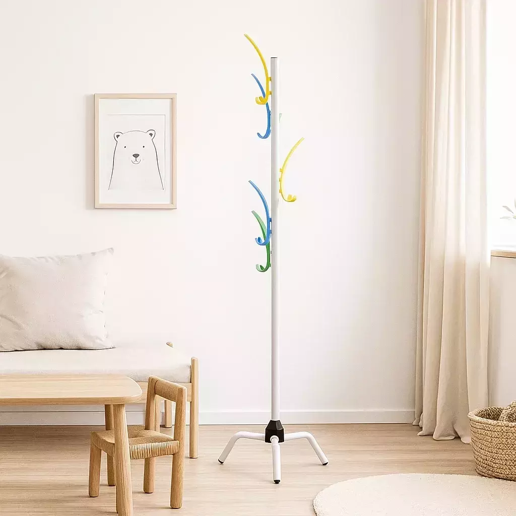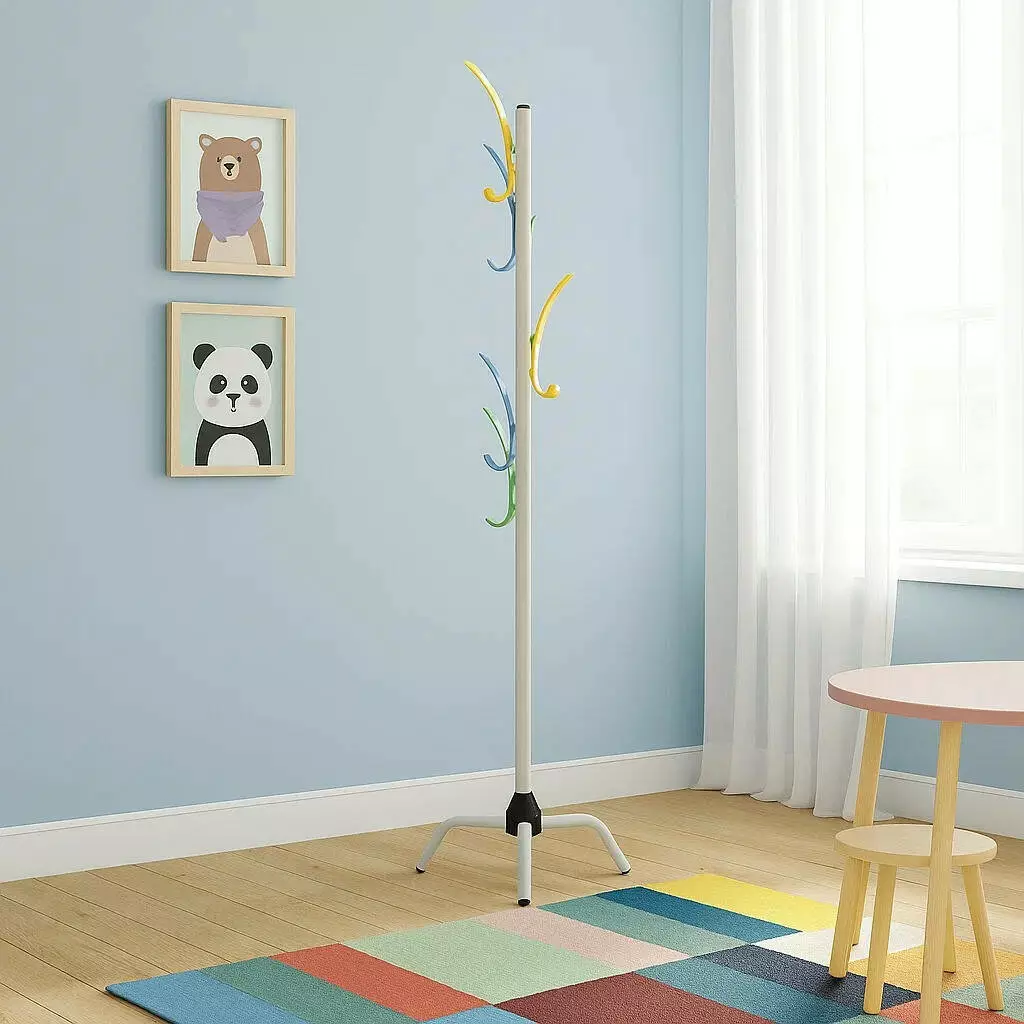 Вешалка выполнена из качественного металла, что обеспечивает её прочность и долговечность. Благодаря устойчивой конструкции она выдерживает значительную нагрузку и остаётся устойчивой даже при большом количестве вещей. Поверхность металла покрыта специальным защитным слоем, предотвращающим появление ржавчины и обеспечивающим долговечность изделия.