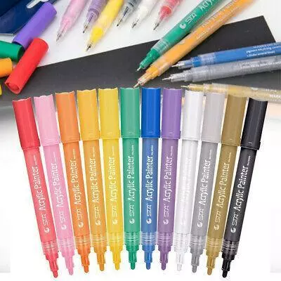 Палитра акриловых маркеров составляет 12 цветов. Цветные акриловые маркеры имеют толщину линии 2 мм – тонкими маркерами можно рисовать скетчи, иллюстрации, создавать контур рисунка. В процессе высыхания, краски можно смешивать между собой: делать плавные переходы цветов и создавать новые оттенки.