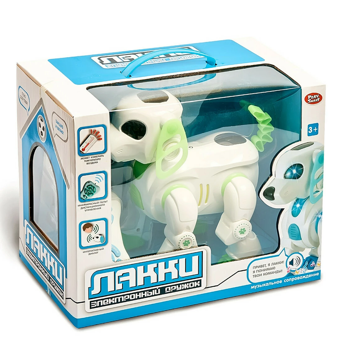 Как только электронный дружок Лакки появится в вашем доме, ваш ребенок не оставит его ни на минуту! Лакки знает команды, танцует, лает, с ним всегда так весело! Интерактивный дружок Лакки не оставит равнодушными даже взрослых.