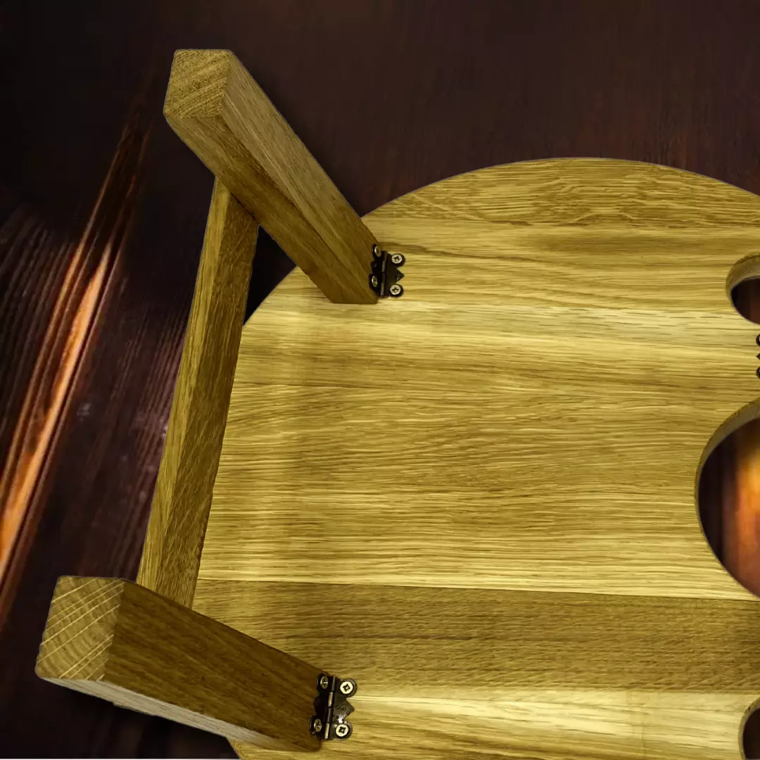 Складной винный столик-поднос из натурального дуба диаметром 35см и