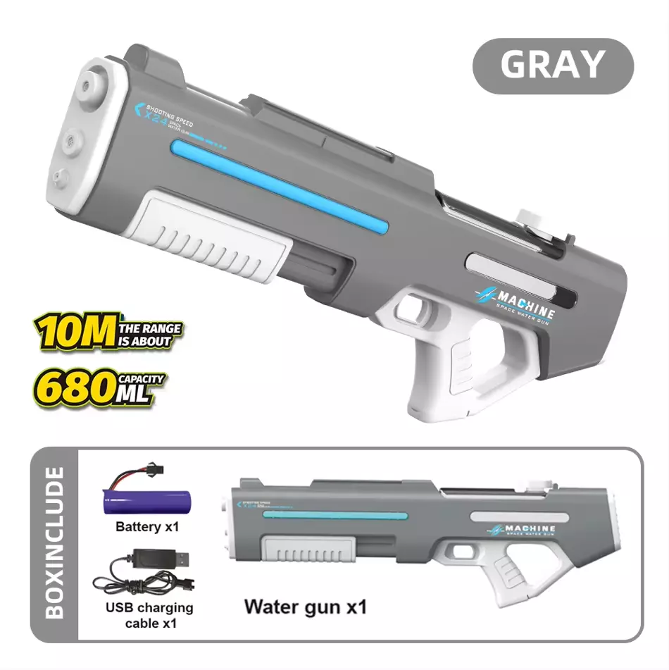 Водный пистолет для детей, электрический бластер, аккумуляторный, игрушечный автомат для детей, серый