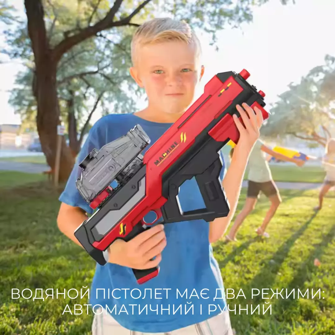 Бак объёмом 800 мл позволяет играть без частых дозаправок, а дальность до 10 метров даёт свободу движения и манёвра. Прочный корпус и удобная рукоятка делают автомат удобным в бою, а яркий дизайн сразу привлекает внимание - ты будешь в центре событий!