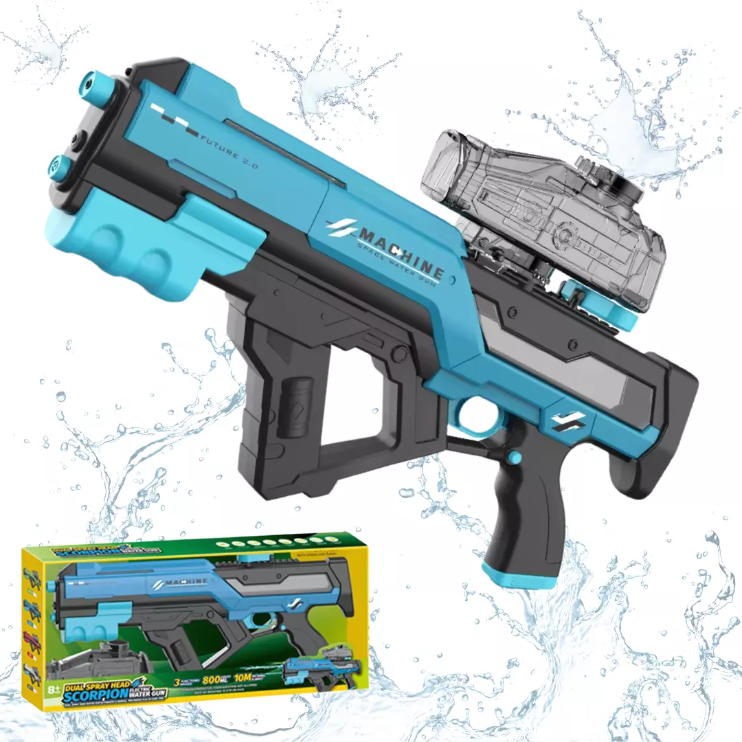 Водный пистолет для детей, электрический водный автомат Скорпион с автоматической закачкой воды, синий