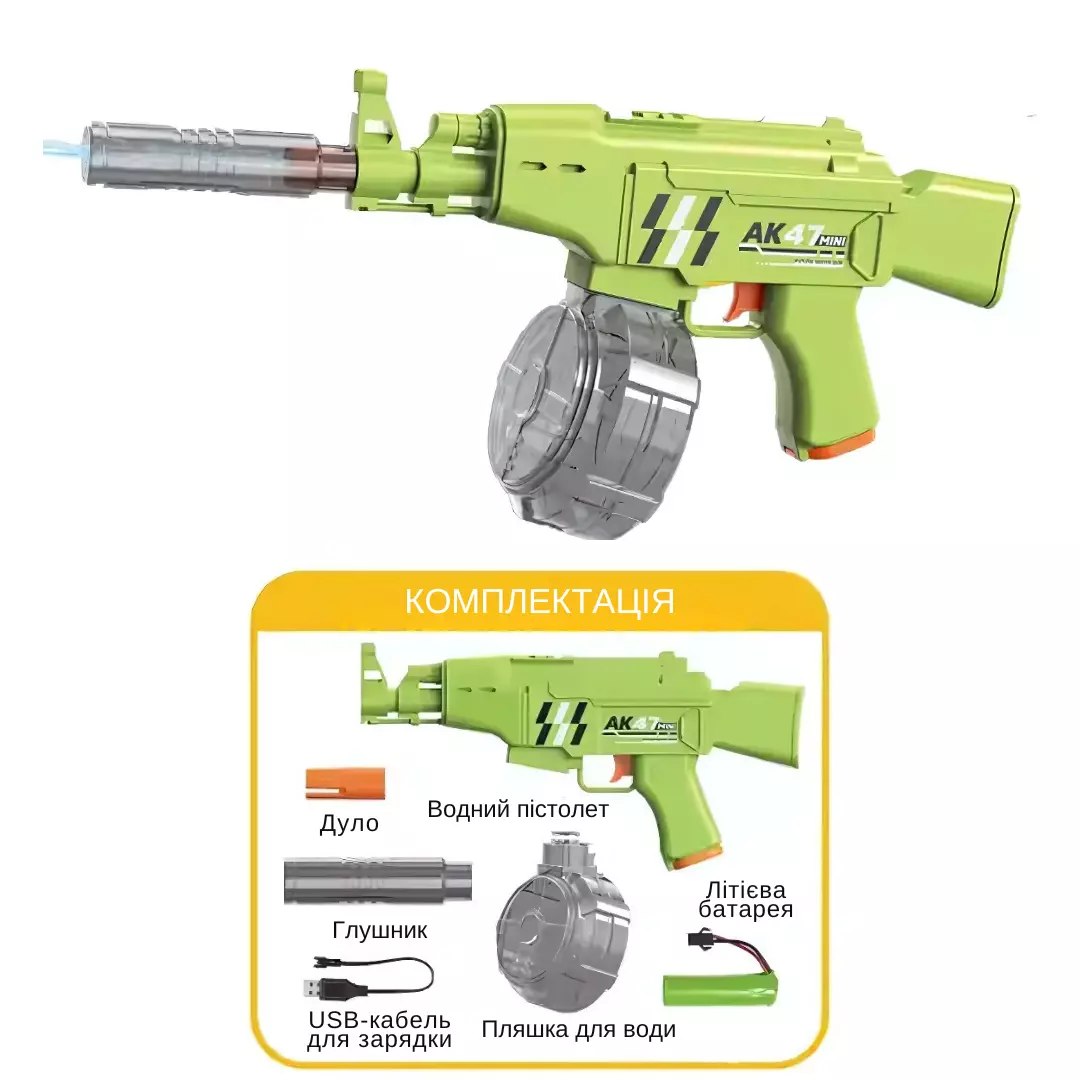 Водный пистолет для детей, игрушечный водный автомат АК47 на аккумуляторе, электрический бластер, зеленый