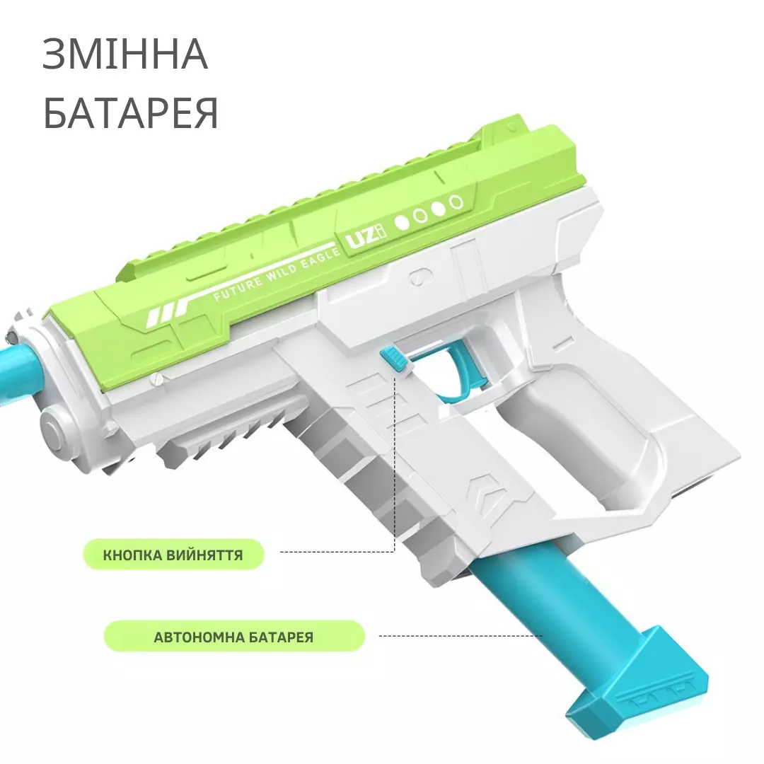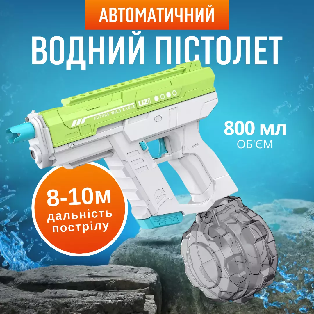 Водный пистолет, электрический бластер для детей, водный пистолет с автоматической подкачкой воды, зеленый