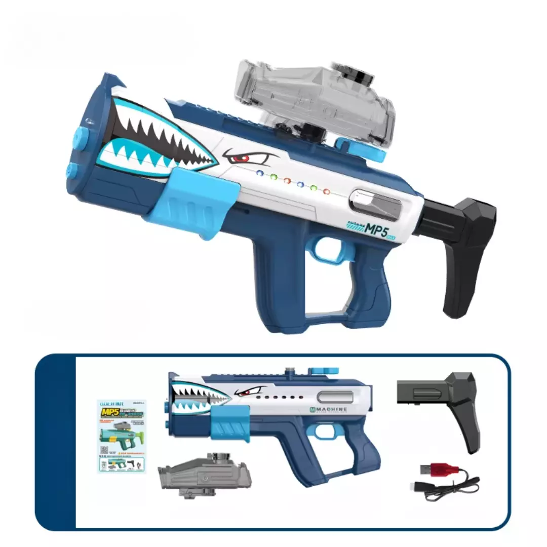 Водный пистолет, мощный бластер с подсветкой, аккумуляторный, игрушечный водяной автомат для детей, акула