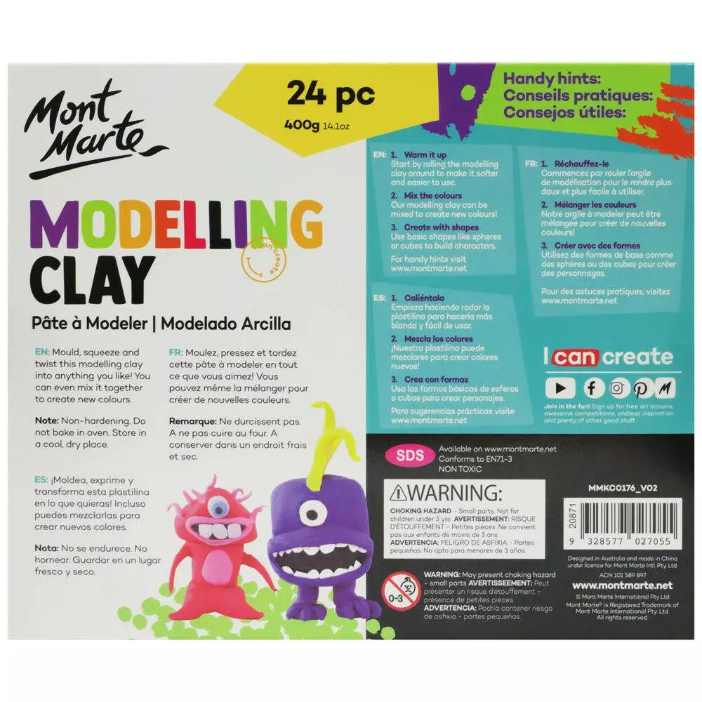 Воздушный пластелин Mont Marte Modelling Clay 400g глина для лепки 24 шт.разноцветный для моделирования