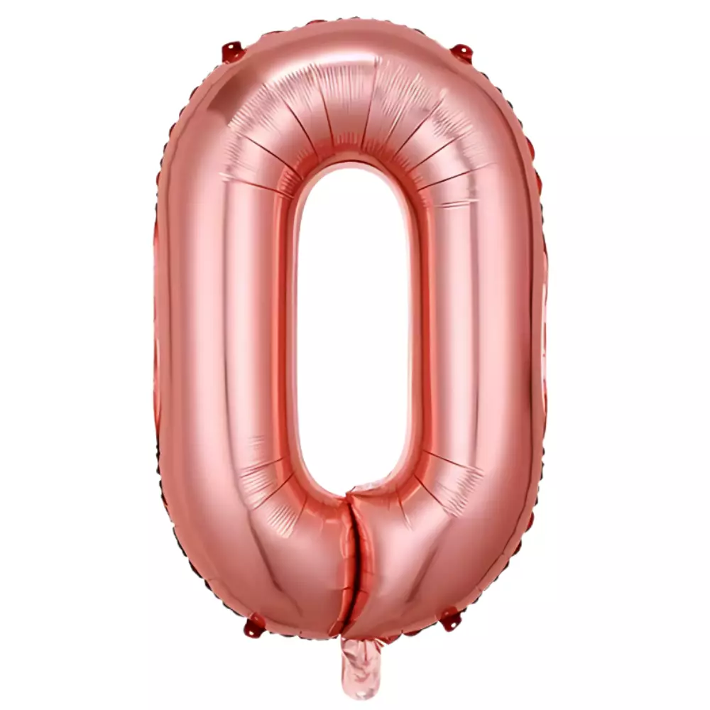 Фольгированный шар в форме цифры «0» в цвете розовое золото —