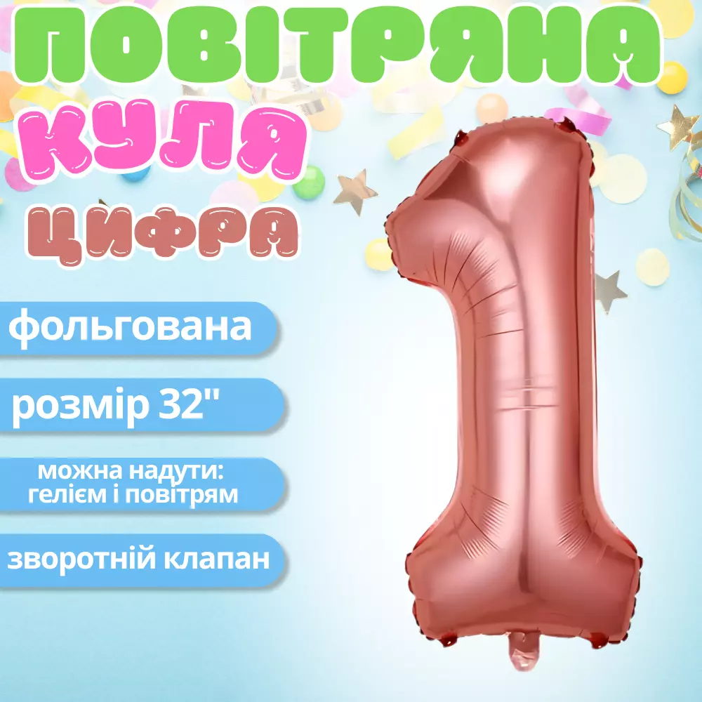 Фольгированный шар в форме цифры «1» цвета розовое золото —