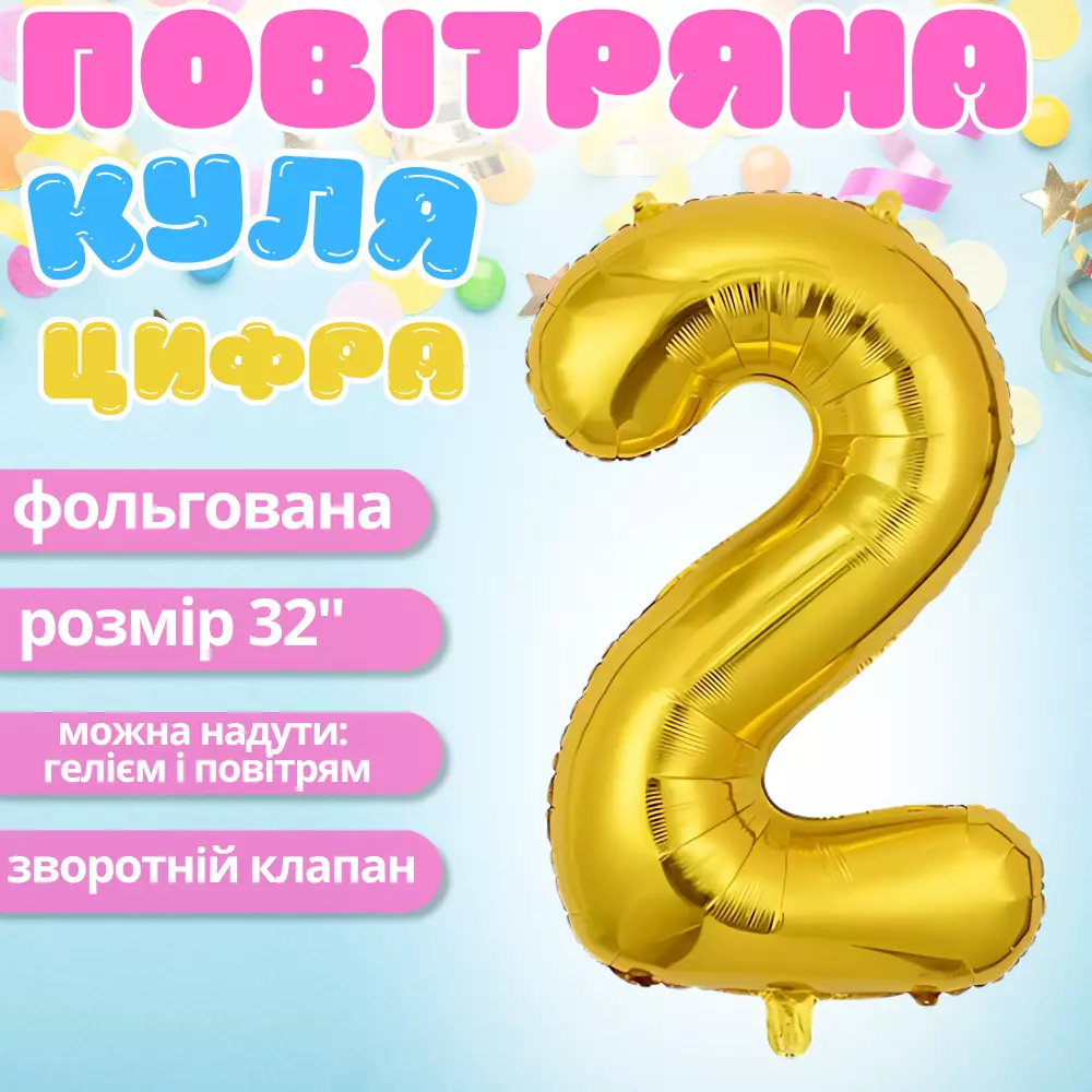 Фольгированный воздушный шар в виде цифры «2» станет ярким