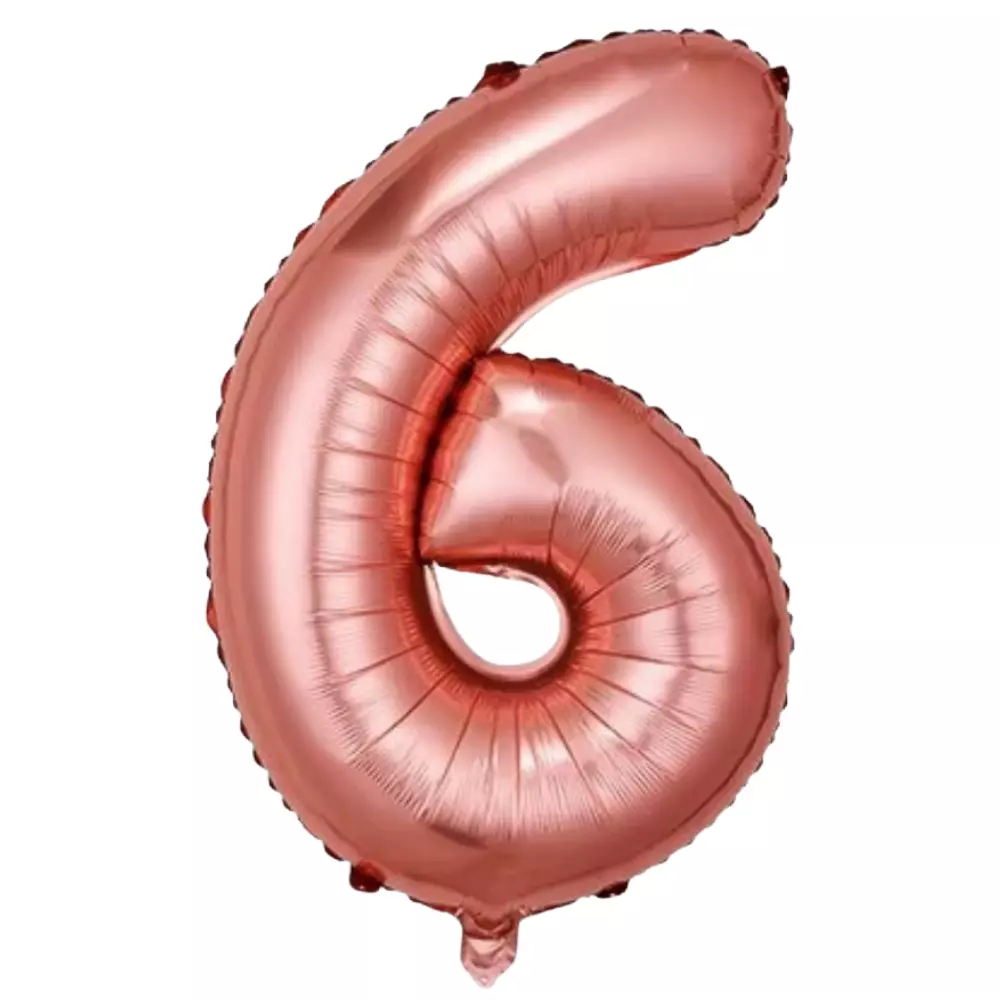 Фольгированный воздушный шар в виде цифры 6 розового золотого цвета