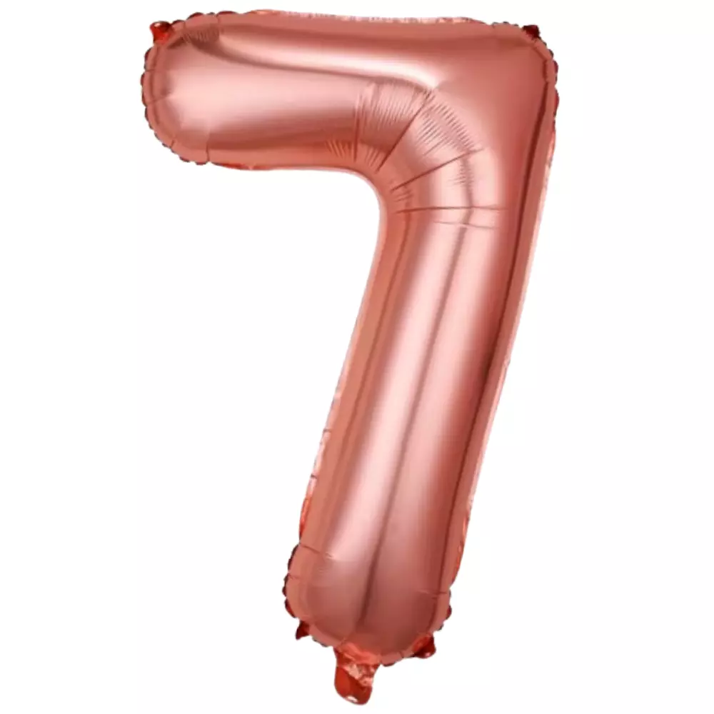 Фольгированный воздушный шар в виде цифры 7 розового золотого цвета