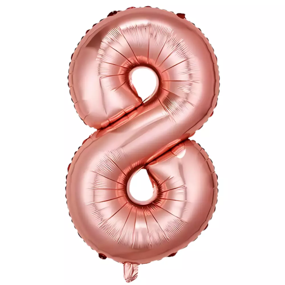 Фольгированный воздушный шар в виде цифры 8 розового золотого цвета