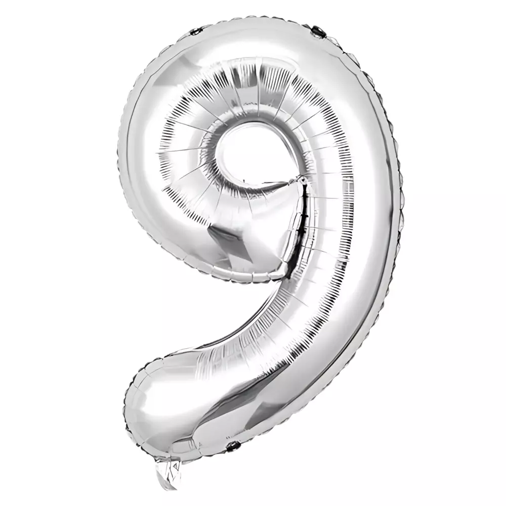Фольгированный воздушный шар в форме цифры «9» серебристого цвета —