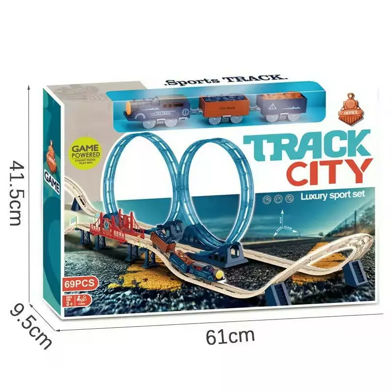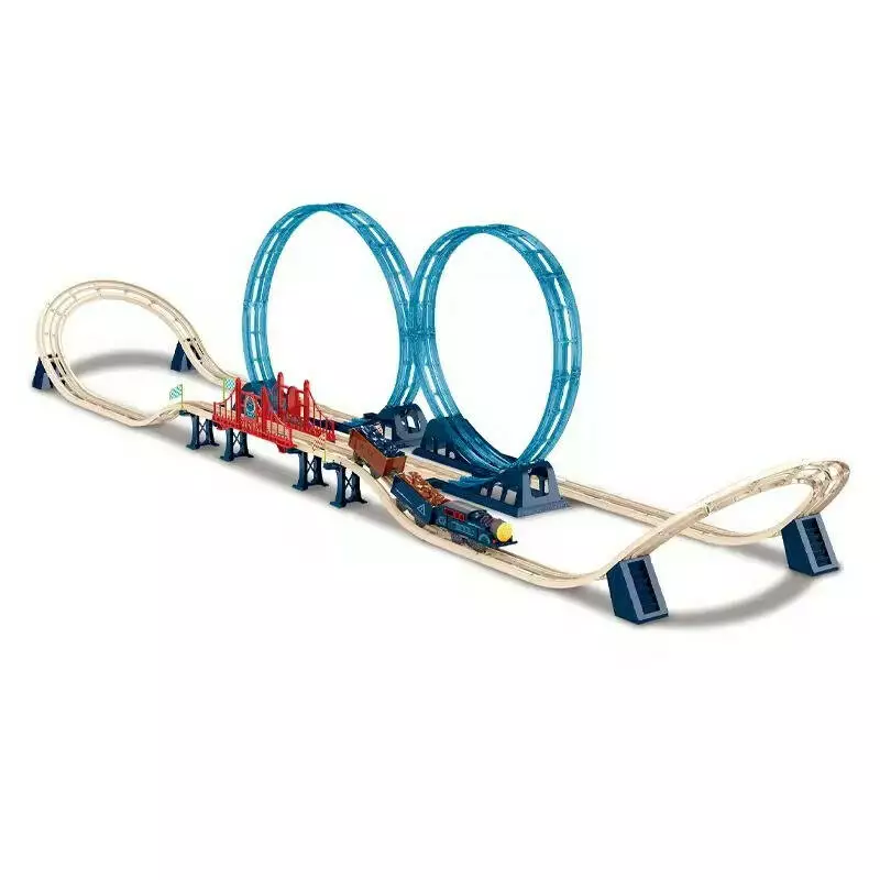 Трек включает две мертвых петли высотой 41 см, что добавляет дополнительный элемент захватывающего экшена. Размеры трека (ширина 54.3 см, длина 184 см) позволяют ребенку строить разнообразные маршруты и испытывать поезд на максимум. В комплекте также предусмотрено зарядное устройство с подключением USB-A, что обеспечивает удобную зарядку аккумулятора.