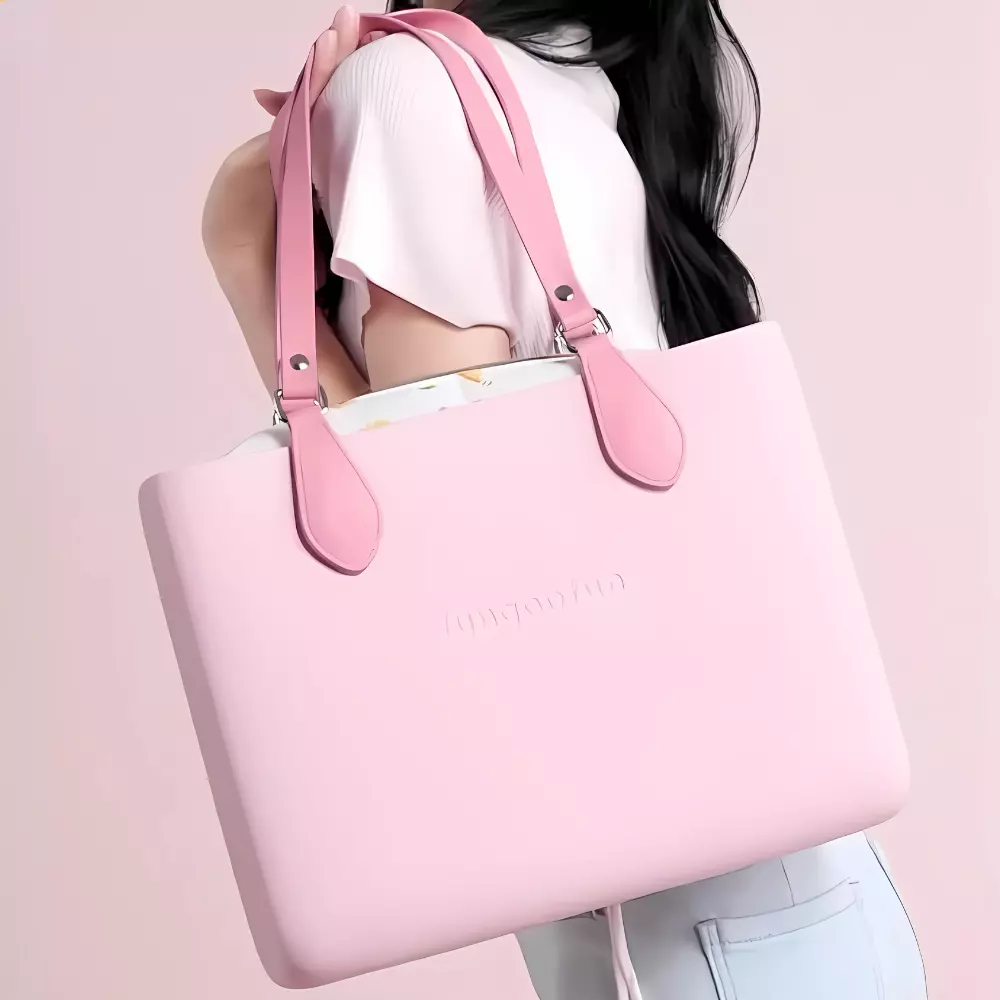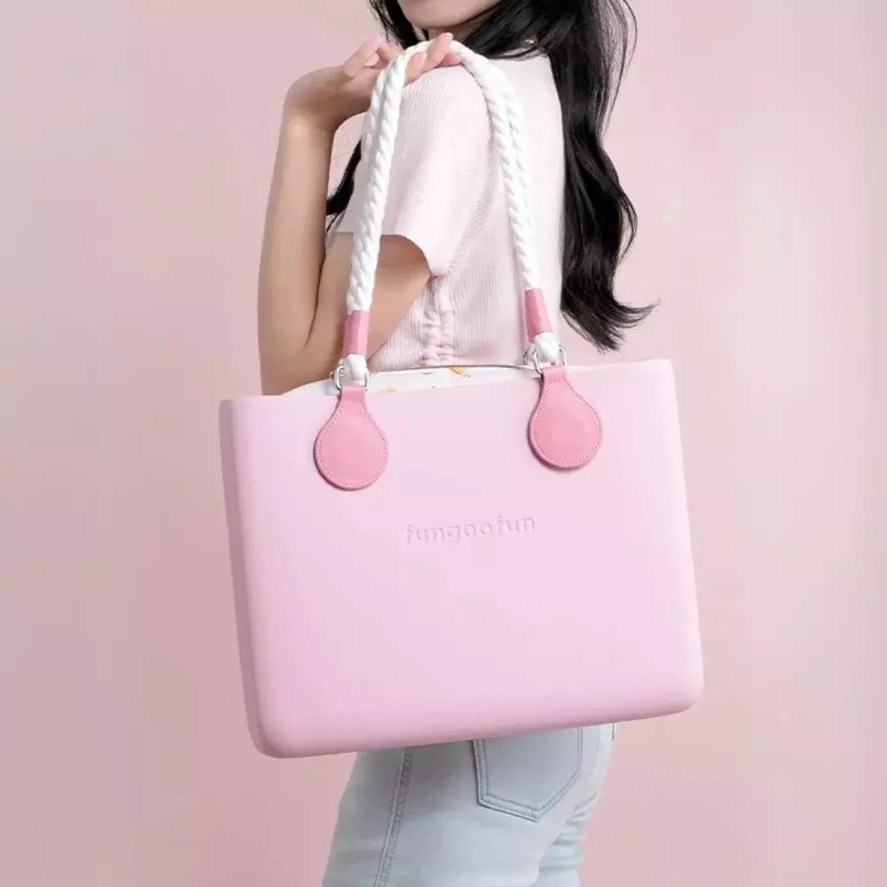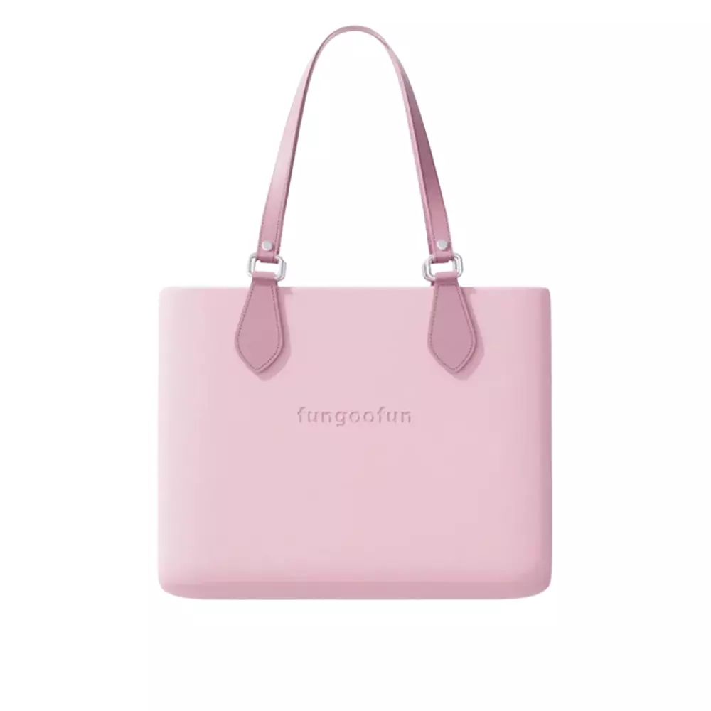 Женская сумочка шопер силиконовая на плечо с двумя комплектами ручек с подкладкой на молнии Fungoofun, розовая