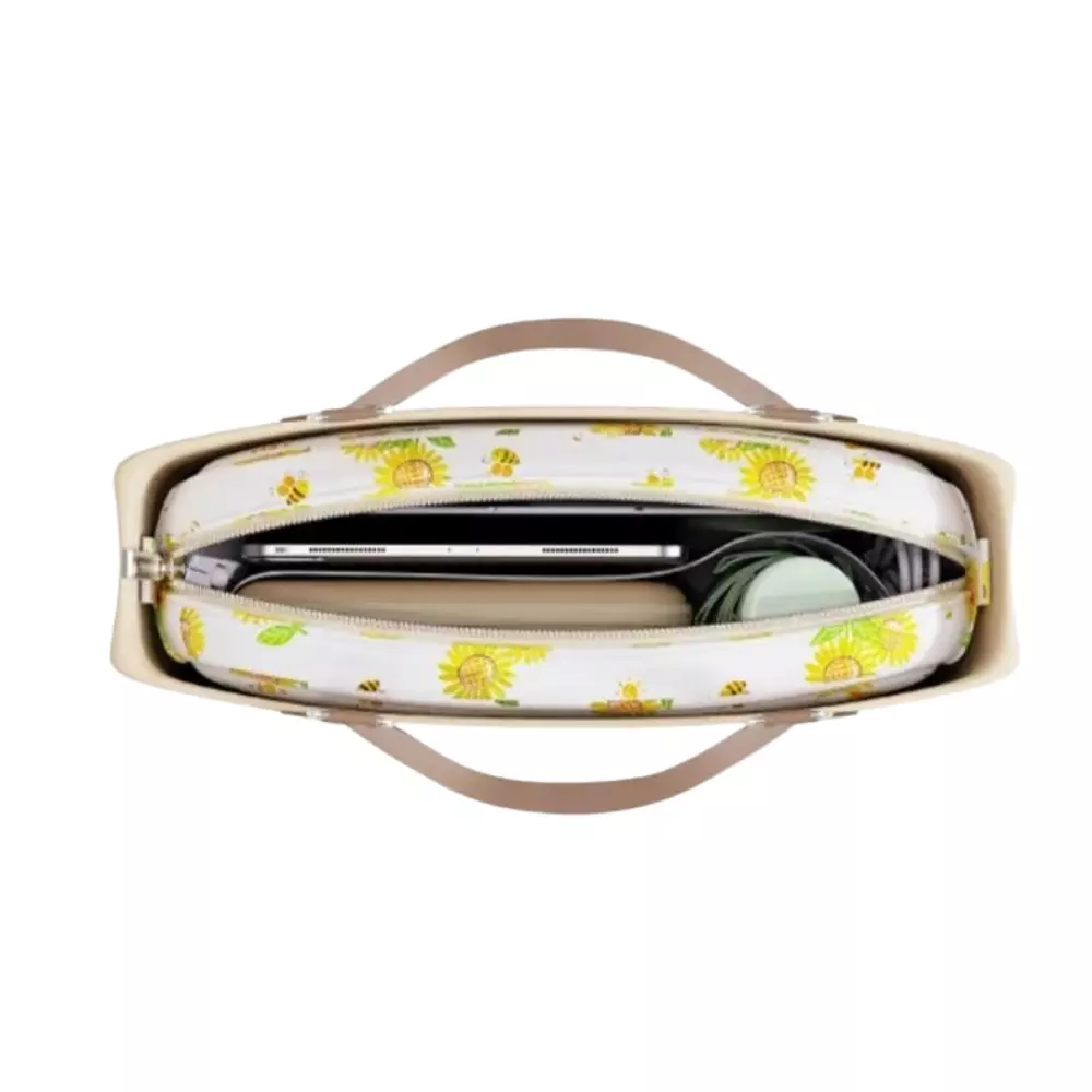 Сумка оснащена двумя комплектами ручек, позволяя выбрать удобный вариант ношения. Внутреннее пространство тщательно продумано: оно вмещает одежду, планшет, складной зонт, косметику и другие необходимые вещи. Подкладка на молнии обеспечивает дополнительную защиту содержимого, а гладкая поверхность сумки легко очищается одним движением. Благодаря разнообразию цветов каждый сможет выбрать идеальный вариант под свой стиль.