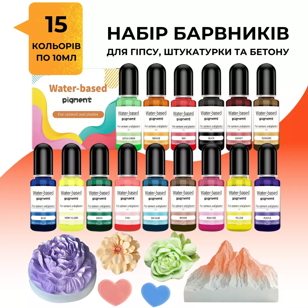 Жидкие пигменты для бетона, гипса и штукатурки, 15 цветов по 10 мл, водная основа